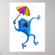 Esta sapo azul divertida não tem nenhum cuidado no mundo enquanto ela canta com seu guarda-chuva colorido durante uma chuva de verão. As impressões de arte podem ser impressas no papel de sua escolha e até mesmo adicionar uma moldura para decoração fácil ou brindação.