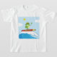 Um sapo surfando em uma grande onda. Esta design parece muito eficaz nesta Camiseta de Meninas