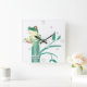 Sapo bonito sentado no topo do bambu com pontos de platina para marcadores de posicionamento de hora