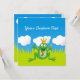 Cartoon Príncipe sapo com coroa. Elementos de fundo amovíveis (céu, grama, nuvens). Custom Text.
