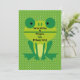 Convite de aniversário Personalizado Da Criança: Ilustração/Verde limão Do Sapo Verde Whimsical E Fundo Pontilhado Branco/Personalização De Tipografia Fanciosa