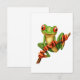 Este adorável design apresenta um pequeno sapo de árvore segurando-o em um galho fino. O pequeno sapo está olhando para frente com sua cabeça inclinada levemente para um lado dando a ele um olhar curioso. Todos os quatro pés do sapo estão envoltos em um galho fino que se move do fundo do design até o lado direito do padrão. Esta design única é um exemplo fofo desta maravilhosa criatura da floresta tropical.