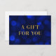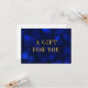 Cartão de Certificado de Presente com a menção "A Gift For You" em folha de ouro falsa contra um padrão de luz azul-anão de safira sobre o fundo da frente. Personalize este cartão com seus detalhes substituindo o texto do marcador de posição. Para obter mais opções, como alterar a fonte, o tamanho/cor do texto ou o espaçamento entre letras, clique no botão "Personalizar". *Observe que a Marca d'água do Zazzle que aparece na visualização de zoom NÃO aparecerá no produto impresso final. © Rosewood e Citrus