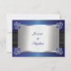 Placa de resposta de casamento brilhante e sofisticada e na moda com fundo faux sapphire blue satin impresso e fita preta de satin com diamantes e clipes de canto safira. As fritas fitas pretas, as braçadeiras de safira e diamante e o fundo de safira de gradiente continuam atrás para um olhar polido e sofisticado. Design original por Holiday Hearts Design (todos os direitos reservados). Note que todos os embelezamentos estão impressos.