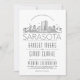 Um convite de casamento único para um casamento acontecendo na bela cidade de Sarasota, Flórida. Este convite apresenta uma ilustração estilizada do horizonte único da cidade com seu nome embaixo. Esta é seguida pelas informações do dia do casamento em um estilo aberto. No verso do convite está uma cor de cinza profunda para complementar a aparência e o sentimento. Todos os elementos individuais do cartão de convite estão desbloqueados, portanto, sintam-se livres para alterar ou adicionar os detalhes necessários usando a função de personalização. Você pode adicionar uma foto ao verso e adicionar um filtro preto e branco a ele. Além disso, você pode experimentar os vários tipos únicos de papel mais espesso e cortes disponíveis. Estão disponíveis placas RSVP, bandas de barriga, sacos de tote e muito mais. Divirta-se sendo criativo e fazer seu!