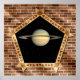 Aqui está uma imagem excelente de Saturno através de uma janela em uma parede de tijolos. Seria um presente perfeito para quem ama astronomia e ciência.