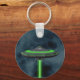 Este chaveiro de ficção científica apresenta um foguete retrô.