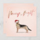 Um cartão de boas-vindas de Natal ou Feriado com um cão German shepherd num chapéu de Papai Noel. Mude facilmente as informações para as suas. Saudações sazonais divertidas e brilhantes.