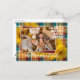 Cartão de Natal único, clássico, de moda, bonito e decorativo. Cartão de Natal único, clássico, de moda, bonito e decorativo. GRATUITO FANTASIA DANDO aos OBRIGADOS texto e espaço para personalizar ou personalizar com uma foto e nomes (ou nome da família) de sua escolha. Com flores amarelas quentes e bonitas Mães de queda amarelas em um verde azul-lacrimogêneo, laranja-abóbora e vinho burgundy vermelho cor rústica da fazenda inspirou design de padrão de tartan xadrez. E um poema de saudação de estação personalizável na parte de trás do cartão.