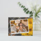 Cartão único, clássico, de moda, bonito e decorativo de Ação de Graças. Com espaço para personalizar ou personalizar com uma foto e nomes (ou nome da família) de sua escolha. Com flores de Mãe amarelas quentes e bonitinhas de queda amarelas na fazenda rústica inspiraram-se no padrão de xadrez tartan design. E um poema de saudação de estação personalizável na parte de trás do cartão.