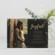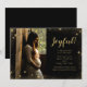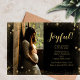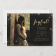 Envie os desejos de "alegria" para a família e os amigos, longe e perto, deixando-os também saber a data de vencimento do seu bebê. Este modelo fotográfico está à esquerda com um lado negro direito, floco de neve dourado e borda estelar. Modelos para nome, ano e data de vencimento esperada do bebê incluídos.