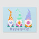 Gnomos de "Primavera Feliz", divertidos, segurando coração, balão e flor. Mande cumprimentos primavera felizes para seus amigos e família este ano! Altere o texto na parte frontal da placa clicando em Personalizar acima. Trabalho de arte/fotografia por Melanie Fine©