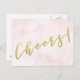 NewParkLane - Cartão postal elegante, com o desejo 'Cheers!' em tipografia elegante de pseudo-folha de ouro, contra um fundo em aquarela cor de rosa.