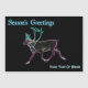 Uma renderização brilhante, semelhante a neon, de uma rena, também conhecida como rena. "Saudações da Estação" aparece em azul e branco brilhantes. Adicione seu próprio texto adicional. Inspirado pelas luzes do Norte.