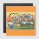 Lembras-te das longas viagens de estrada quando eras criança? Seu irmãozinho não pararia de perguntar, "Nós já estamos lá?" Viva a sua infância com este cartão de posto clássico de excelente de Augusta. Retro e incrível, ele apresenta os famosos marcos da cidade de Jardim
