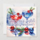 Espalhe alegria natalina com este cartão festivo! Com dois copos de coquetel sofisticados (vermelho e azul) decorados com ramos de pinheiro e frutas, além de ornamentos encantadores e ramos de pinheiro. O texto diz, "Saudações para uma Temporada de Natal Alegre!" em letra cursiva estilosa. Totalmente personalizável na frente e no verso.