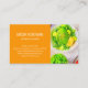 Essa saúde limpa, bem-estar, comidas orgânicas saudáveis, restauração de modelos de cartão de negócios personalizadas impressão a pedido é perfeita para negócios saudáveis de comidas, produtos orgânicos, restauração saudável de comidas, serviço de comidas orgânica, restauração saudável de comidas, revolução verde, produtos orgânicos, fazenda para mesa negócio, fazenda orgânica, mercado de agricultores e muito mais. Ainda não encontras o que gostas? Visite nossa página de loja para mais cartão de visita ideias e modelos. - Design apresenta comida, abacate e legumes saudáveis em tons verdes, laranja, amarelo e branco claros, em fundo laranja.