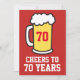 Saúde a 70 anos de convite de festas de cerveja por um aniversário de 70. É um fundo vermelho com uma imagem de uma cerveja grande. Excelente para um amante de cerveja fazendo setenta. Levante um brinde a alguém que comemora 70 anos!