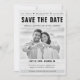 Announce your wedding with this charming and unique newspaper-inspired Save the Date card. Designed to resemble a vintage newspaper cover with a touch of grunge, it's perfect for sharing your big news. To customize your card, simply click "Personalize This Design," upload your photo (filter is set to black and white), and enter your details. Zazzle will handle the rest!