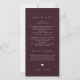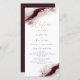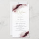 Este programa de casamento apresenta salpicos de aquarela boêmia com coloração de maroon burgundy e uma letra de ouro suja. Use esta ordem de serviço da linha do dia do casamento para sua queda boêmica ou casamento do vencedor ou modificar para qualquer outro evento.