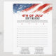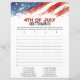 Traga risadas, emoção e diversão patriótica para a sua celebração do Dia da Independência com este envolvente jogo de festa de 4 de Julho! Projetado em tamanho carta americano para impressão fácil, este jogo festivo é perfeito para reuniões familiares, churrascos e festas de fogos de artifício.