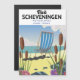 Poster de praia de Scheveningen, Países Baixos, em estilo vintage.