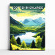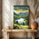 Bring the calm of Scotland home. This Scottish Highlands canvas features rolling green glens, layered mountain peaks, plus a quiet loch that anchors the scene. The palette feels fresh and outdoorsy, making it easy to style in a living room, bedroom, cabin, or office. A thoughtful gift for Scotland trips, UK travel lovers, hikers, and anyone who wants Highlands wall art with a clean travel poster look.