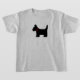 Esta Camiseta de cão escocesa apresenta um pequeno cão escocês preto com um colarinho vermelho. Que bom para a escola!