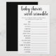 Desembaralhe as palavras do bebê! Um simples chá de fraldas ou gênero revela o jogo do jogo de palavras (com as respostas abaixo) com um roteiro divertido e casual, escrito à mão. O clássico design inclui uma moderna camada de tipografia de citações feitas à mão. Para outras cores ou produtos correspondentes, visite a loja justFharryn Zazzle ou entre em contato com o designer, c/o Fharryn@yahoo.com Todos os direitos reservados. #bohochic #zazzlemade RESSWER KEY: Banda, Caneta, Bicho, Bicho, Shampoo, Porta de Bebê, Blanket, Um Lado, Fralda, Rolha, Monitor de Bebê, Lullaby, Pacificador, Garrafa