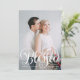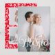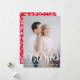 Deseje aos seus amigos e família um feriado feliz enviando-lhes o nosso cartão com fotos de feriado Bendê-Script. O cartão festivo mostra sua foto favorita na frente com Bênçãos em uma cobertura de script com letra branca. Personalize o cartão de feriado adicionando uma saudação personalizada e o nome da sua família. O verso da placa apresenta mais duas fotos dentro de um quadro retangular branco e um padrão vermelho e branco de bagas e folhagem sagradas.