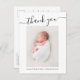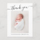 Cartão postal moderno de agradecimento de anúncio de nascimento com foto em bleed na frente e caligrafia elegante. Pode ser personalizado com sua própria mensagem e estatísticas do bebê.