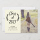 Este convite simples e elegante para festas de formatura a preto e creme apresenta as palavras "classe de 2017" na tipografia moderna do roteiro preto, com dois ramos correspondentes. Adicione a foto do formando e personalize a frente e a parte traseira com as informações da sua festa.
