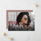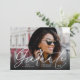 O anúncio de fotos da graduação moderna apresenta uma foto horizontal ou orientada à paisagem na frente, com "Formando" sobreposto em um roteiro de estilo manuscrito branco e seu nome, escola e ano de graduação abaixo. Adicione uma mensagem pessoal ao verso, juntamente com uma foto adicional.