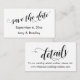 Mantenha seus convidados de casamento em contato com todos os seus detalhes com esses vestidos bonitos de casamento. Estes cartões bonito refletem um estilo elegante e casual. As sobreposições de texto chic foram projetadas usando uma fonte moderna de script a preto. Um lado lê "salvar a data" e o outro, simplesmente diz "detalhes". Use os campos modelo para personalizar essas placas de gabinete com suas informações pessoais. Impresso com a "tecnologia de cartão de visita", o tamanho útil será fácil de manter à mão. Envie-os por e-mails tradicionais, e guarde alguns por perto para compartilhar com aqueles que precisam de um ou dois extras! O fundo é branco e esta cor editável pode ser alterada para qualquer coisa da paleta de casamento que você escolher; todo o texto editável aparece em preto. // 99 // Concebida por Melody Watson para Paper Muserie.