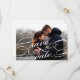 Os cartões salve a data elegantes apresentam sua foto favorita em uma dramática hemorragia de cheio, com "salve a data" sobreposta em um roteiro de caligrafia branca adornado com pântanos. Personalize o reverso com os detalhes do casamento, incluindo nomes, data, local e informações adicionais, como o site do casamento.