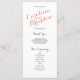 Típica de cinza de coral rosa e carvões lindos em um fundo branco faz esses elegantes programas modernos de casamento se destacarem. Design por Elke Clarke © Personalize com sua cor de fundo e todas as suas informações pessoais para um programa de casamento de luxo que seus contínuos podem distribuir enquanto seus convidados entram na igreja ou estão sentados onde a cerimônia acontecerá. Ajuda as pessoas a seguirem-se durante a cerimônia, mas também atua como guardiã dos seus hóspedes. Você pode usar os campos modelo para preencher as informações sugeridas sobre a festa de casamento e a ordem do serviço e o obrigado que você envia ou selecionar "personalizar" e usar o menu editar para alterar o espaçamento de texto, as fontes, as cores conforme desejar criar seus próprios programas de casamento.