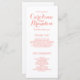 Programas de Casamento Elegante. Texto cor-de-rosa coral sobre fundo branco. Design por Elke Clarke © Disponível em www.zazzle.com/monogramgallery. Personalize com sua cor de fundo e todas as suas informações pessoais para criar um programa simples, mas sofisticado, que seus contínuos podem distribuir enquanto seus convidados entram na igreja ou estão sentados onde a cerimônia ocorrerá. Ajuda as pessoas a seguirem-se durante a cerimônia, mas também atua como guardiã dos seus hóspedes. Você pode usar os campos modelo para preencher as informações sugeridas sobre a festa de casamento e a ordem do serviço e o obrigado que você envia ou selecionar "personalizar" e usar o menu editar para alterar o espaçamento de texto, as fontes, as cores conforme desejar criar seus próprios programas de casamento.