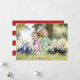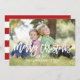 Envie suas Cartões de natal para seus amigos e família usando este cartão com fotos de feriado lindo e simples com as palavras "Feliz Natal" "com amor" escrito em uma camada de fontes de script branco de tendências. Design da ELKE CLARKE © Disponível exclusivamente em www.zazzle.com/monogramgallery*. Substitua a foto de exemplo por sua. Fundo listrado vermelho e branco na parte traseira do cartão. Outras cores disponíveis no armazenamento.