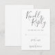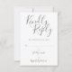 Este cartão de resposta elegante cinza e branco pode ser personalizado com letras cinza chiques. Você pode adicionar informações adicionais, como escolha de menu no verso. Perfeito para casamentos, chá de noiva, chá de bebê, batizados, festas de noivado, celebrações de aniversário, formaturas, aniversários e outros eventos especiais ao longo do ano! Criado por Thisisnotme©