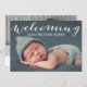 Este anúncio de nascimento simples e chic de 1 foto apresenta uma carta branca de roteiro que destaca sua nova chegada. Selecione uma forma recortada, um papel texturizado ou um papel ultra grosso para um convite especial extra.