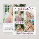 Um anúncio de graduação, moderno, amigável em burgundy ou marrom e branco, impresso em papel leve de 4,5x5,6 pol em vez de estoque de papelão com tipografia de script de caligrafia e um boné de formatura metálico de folha de ouro falso e personalizado com 5 fotos (uma colagem de fotos com quatro fotos na frente e uma na parte traseira). O ano de aula é editável por outros anos. O verso apresenta uma foto de sangria de cheio e um campo de texto opcional para o seu texto personalizado com detalhes sobre o seu formando. Ideal para orçamentos conservadores e/ou entrega manual. Envelopes vendidos separadamente na página de pedidos. ASSISTÊNCIA: Para obter ajuda sobre modificação/personalização do design, alteração de cor, transferência do design para outro produto ou se você quiser coordenar itens, entre em contato com o designer ANTES DE PEDIR por meio do Zazzle Chat ou makeitaboutyoustore@gmail.com.