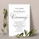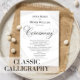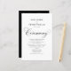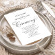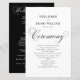 Uma simples modelo de folha de papel do programa de cerimônia do Casamento, com estilo elegante, minimalista, simples, preto e branco, com um roteiro clássico de caligrafia, e tipografia de boas-vindas.