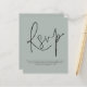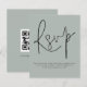 Um valor para o alternativo do ORÇAMENTO em tamanho menor de 4,5 x 5,6" de semirbrilho de 110 lbs, que é de espessura semelhante a um cartão postal (no entanto, não é adequado para uso como cartão postal). POR FAVOR, OBSERVE QUE HÁ UM convite por folha. Simples Código QR Script Casamento Silvery Sage Green RSVP. Um gabinete de opções conveniente para pedir aos seus convidados que digitalizem o seu código QR para o seu site de casamento para RSVP. Uma tipografia de na moda set para o cabeçalho principal RSVP complementando o resto do texto que você pode personalizar facilmente, com código QR no verso. Simplesmente substitua por você.