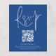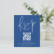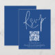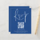 Código QR de Orçamento Script Wedding Blue RSVP Um valor para alternativo de orçamento em tamanho menor, 4,5 x 5,6 pol de semirbrilho, peso de 110 lbs, que é de espessura semelhante a um cartão postal (no entanto, não é adequado para uso como cartão postal). POR FAVOR, OBSERVE QUE HÁ UM convite por folha. Um gabinete de opções conveniente para pedir aos seus convidados que digitalizem o seu código QR para o seu site de casamento para RSVP. Uma tipografia de na moda set em branco para o título principal RSVP complementando o resto do texto que você pode personalizar facilmente.