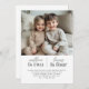 Um convite de aniversário conjunto moderno com sua própria foto e duas seções para o nome e idade de cada criança.