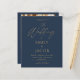 Apresentação do nosso Convite à Apresentação da Tipografia Moderna de Casamento Dourado Azul: Faça uma declaração com os nossos elegantes convites de casamento, com tipografia moderna e sotaques luxuosos de preto e ouro. Criados com muita atenção aos detalhes, esses convites exudem sofisticação e estilo, definindo o tom para seu dia especial. O elegante fundo azul Marinho é enfeitado com um espantoso guião dourado, criando um contraste impressionante que cativa o olho. Personalize os detalhes do seu casamento, desde a data e local até os nomes da noiva e do noivo, para criar um convite personalizado que reflita a sua história de amor única. Quer você esteja planejando um caso urbano chic ou uma família glamourosa, nosso Marinho Blue Dourado Invitation Modern Typografia Script certamente impressiona seus convidados e deixa uma impressão duradoura. Elevem a sua papelaria de casamento com este belo pacote de convite que combina design moderno com elegância eterno.