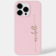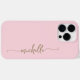 Cor-de-rosa-rosa brilhante Elegante Dourado Nome do Monograma Signature Script Personalizado capas de iphone. Este design Minimalista com seu primeiro nome em um bonito estilo escrito à mão, estilo swash tail script de tipografia de assinatura em ouro, em cor rosa claro para bebê ou cor rosa-rosa-pincel. Tão fácil de personalizar. Excelente presente feminino para aniversário, doce festa de aniversário 16, dia da mãe, para festa de formatura e é para a garota que ama coisas na moda únicas.