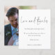 Roteiro de Obrigados e Amor de Casamento. Um alternativo MENOR de 4,5" x 5,6", compatível com o orçamento. Disponível em um STOCK de PLACA SEMI GLOSS 110 lb ou um STOCK de PAPEL THINNER SATIN FINISH 80 lb. Os envelopes são um extra opcional. Um design de tipografia minimalista com um roteiro de estilo de letra de na moda definido para Amor e Obrigados. No verso, substitua a imagem por sua favorita do dia como guardiã para seus convidados. Personalize facilmente o resto do texto com sua mensagem e nomes.