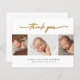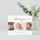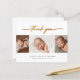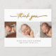 Cartão de agradecimento de anúncio de bebê com colagem de 3 fotos com script elegante. O verso inclui uma mensagem de agradecimento que você pode personalizar ou remover se preferir escrever seu agradecimento à mão.