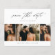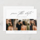 Uma fotografia romântica e simples salva o cartão de data com belas caligrafias, 3 fotos e texto mínimo na frente. O verso inclui o site do casamento para mais informações. Clique no botão editar para personalizar este design.